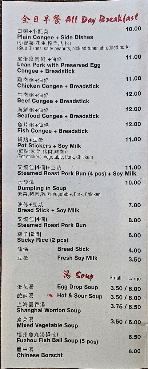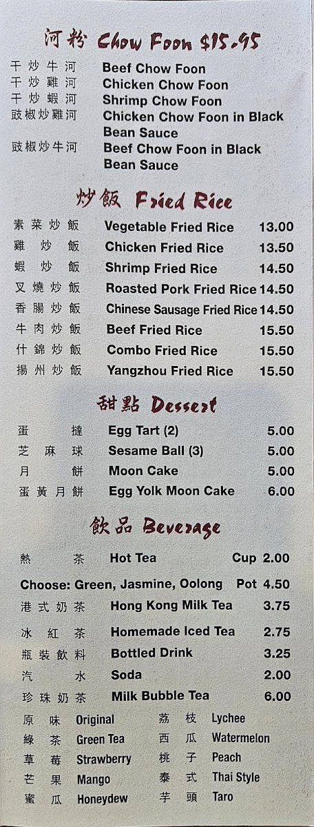 On the menu, you’ll find options like tender orange chicken and aromatic Mongolian beef, alongside lighter fare such as steamed dumplings and vegetable-lo mein. For those looking to warm up, the congee with thousand year egg or braised beef noodle soup offer a gentle, comforting choice. Drinks like Thai tea boba complement the food with a sweet and refreshing finish.