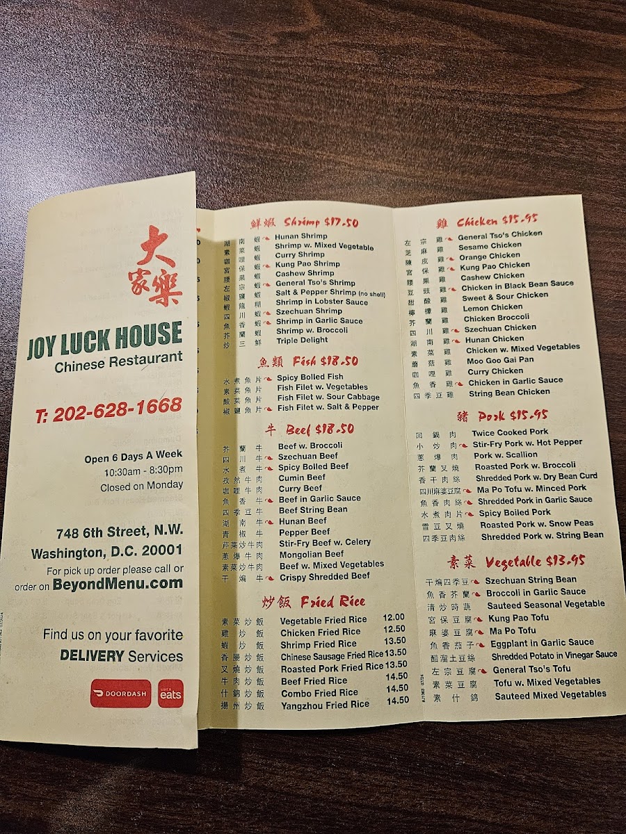 Joy Luck House Menu